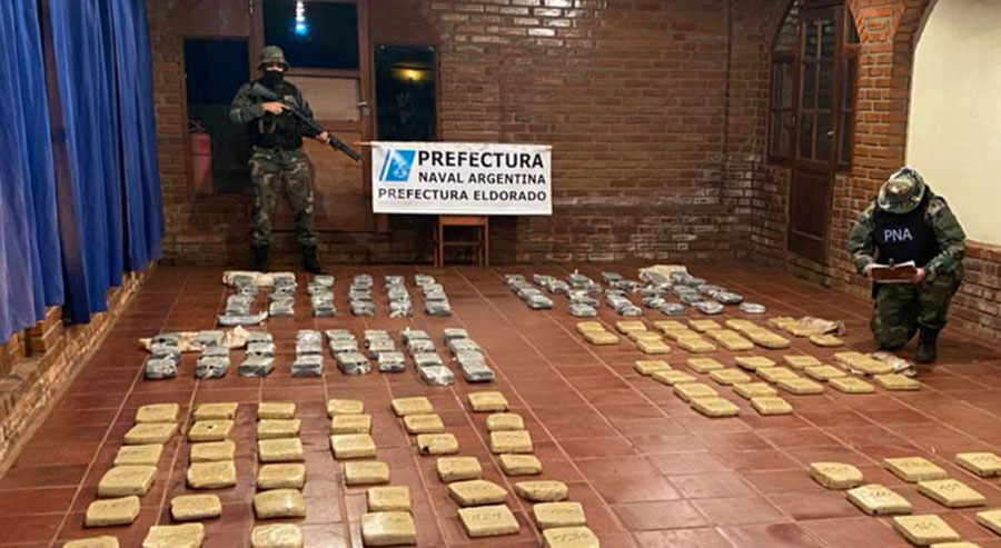 Personal de la Prefectura Naval Argentina decomisó un cargamento de 738 paquetes de marihuana, con un peso de más de 500 kilos, en un procedimiento realizado esta madrugada en Eldorado, Misiones.
