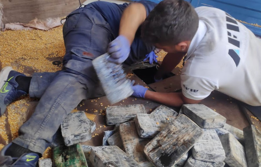 Concordia: Aduana detuvo a dos personas que intentaban cruzar al Uruguay con 87 kilos de cocaína ocultos en un camión de maíz