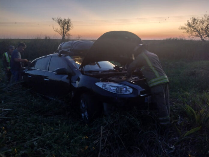 Alertados de lo sucedido, personal del Cuerpo de Bomberos Voluntarios de Ceibas y Policía, acudieron al lugar y al llagar constataron que se trataba de un Renault Fluence, que venía de San Fernando y se dirigía al Brasil, con cuatro ocupantes, tres varones y una mujer, todos mayores de edad.