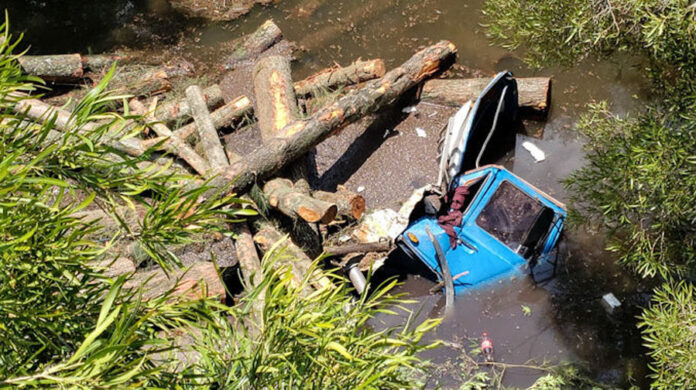 Un camión cayó del puente que pasa sobre el arroyo San Francisco Chico, frente a la planta de agua DAP, tras protagonizar un siniestro de tránsito.