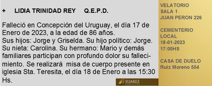 Fúnebres Lidia Trinidad Rey QEPD enero 18, 2023 Más Fúnebres Fúnebres Justo Rufino Conde Q.E.P.D Fúnebres Justo Rufino Conde Q.E.P.D Fúnebres Jorge Roberto Fontana QEPD