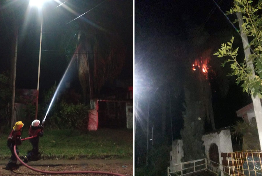 Esto fue lo que sucedió en Caseros cerca de las 5 de la madrugada, donde se produjo la caída de un rayo sobre una palmera.