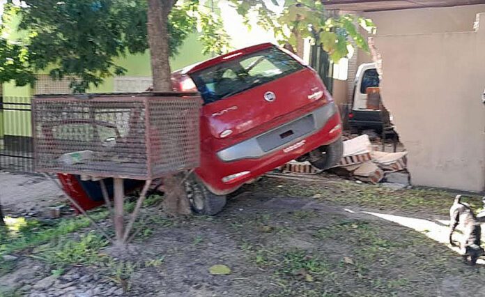 A raíz de este incidente, el auto terminó subiendo a la vereda, chocando contra el muro y rejas de dos viviendas.