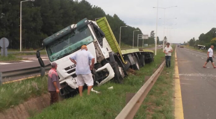 Un camión marca Iveco que transitaba en dirección Sur-Norte, por razones a establecer, colisionó con el guardarrail y quedó estacionado en el cantero central. El conductor, de 30 años, fue derivado al hospital Masvernat donde informaron que presenta lesiones leves.