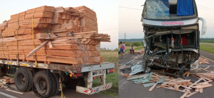 Dos personas lesionadas: Chocaron un colectivo larga distancia con un camión cargado con maderas