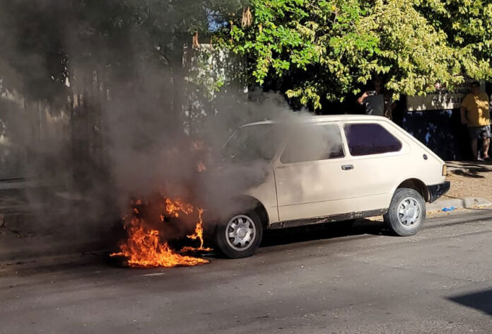 A las 17:12 horas Bomberos Voluntarios tomaron intervención al ser alertados sobre un incendio vehicular en Leguizamón al 520.