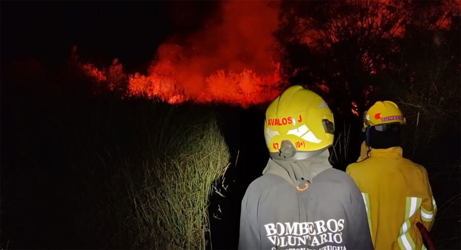 Efectivos del Cuartel de Bomberos VOluntadios de COncepción del Uruguay, a solicitud de sus pares de Colonia Elía, debieron tomar intervención por un incendio forestal de gran dimensión en estancia «La Selmira». Colaboró Bomberos Caseros.