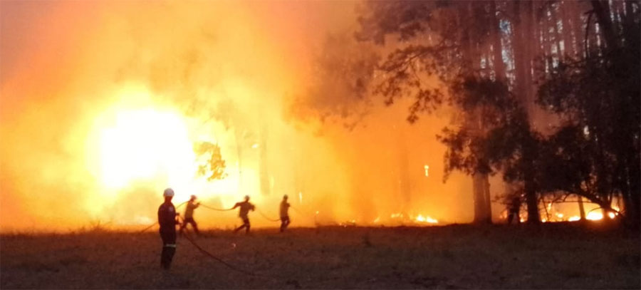 Por otra parte, personal del Cuerpo de Bomberos Voluntarios Ceibas, acudió con cuatro dotaciones a una forestación de pinos en ruta Nacional 12 km 164, en la Estancia La Pellegrina.