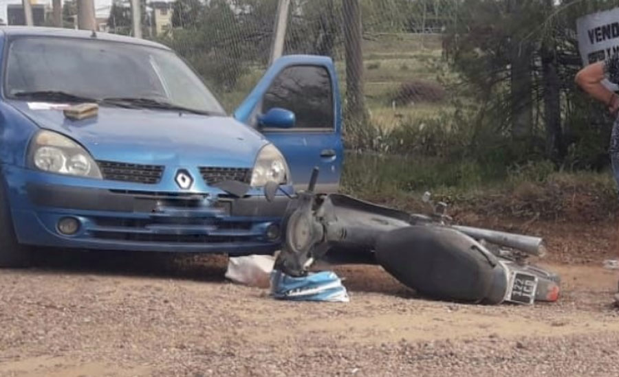 En horas de la tarde de la fecha, personal policial, intervino por accidente de tránsito, ocurrido sobre ex Ruta 26 y Primeros Colonos, lugar donde se produce una colisión entre un automóvil, Renault Clío, conducido por un ciudadano y una motocicleta, Brava Nevada, 110CC, guiada por un masculino, quien como consecuencia del impacto, resultó con lesiones.