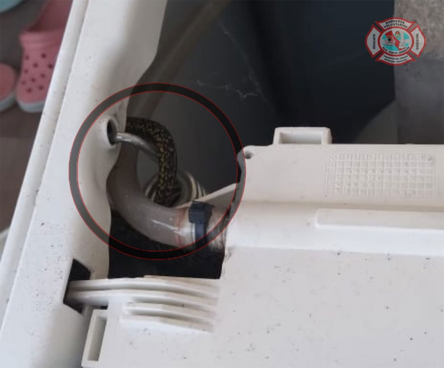 Cerca de las 16 horas, personal de Bomberos Voluntarios debió acudir ante el llamado de vecinos de una casa en el Barrio Rancho Doble S, cuando descubrieron la presencia de una serpiente que se encontraba en el interior de un lavarropas.