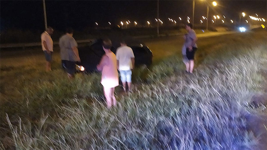 Al llegar se constató que se trataba de un automóvil marca Volkswagen Gol Power, que habría despistado y caído en una alcantarilla que divide los carriles de la ruta.