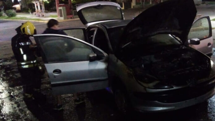 Personal policial y de Bomberos, debió tomar intervención este martes en horas de la madrugada, ante el incendio de un automóvil en el bulevar Montoneras, entre Sarmiento y Alberdi.