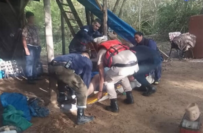 Un hombre de unos 50 años de edad, fue rescatado este viernes por personal de la Prefectura Naval y Bomberos Voluntarios, en la isla Cambacua.