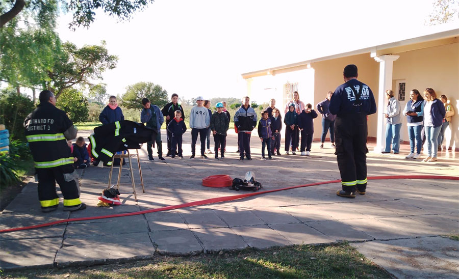 Bomberos Voluntarios de Caseros, participaeron de diferentes simulacros y otras actividades en establecimientos del interior del repartamento Uruguay.