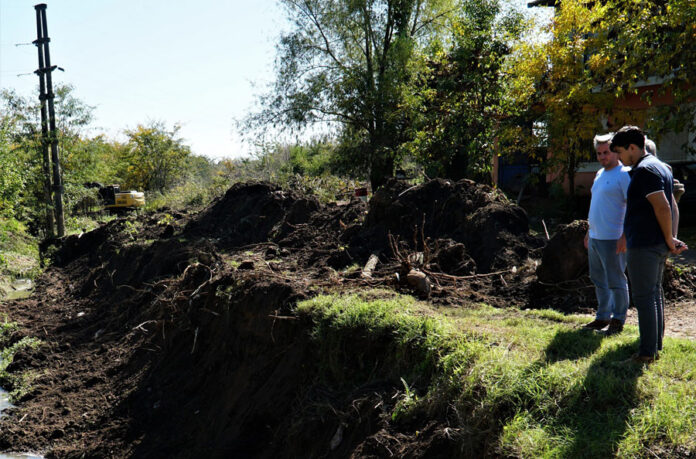 El Intendente José Luis Walser observó el inicio de las tareas en inmediaciones de Combatientes de Malvinas y Primera Junta donde maquinaria pesada llevaba a cabo las primeras excavaciones de profundización y limpieza del canal.