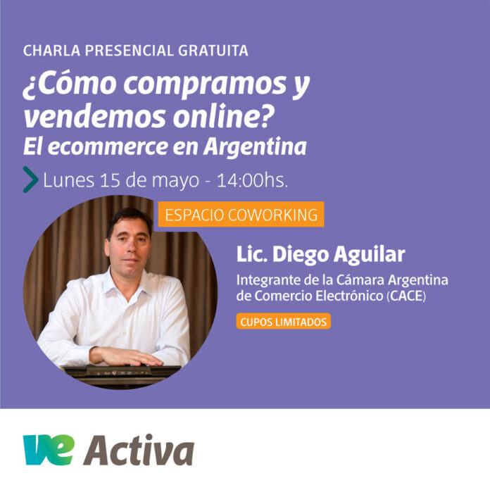 Villa Elisa Activa invita a una charla sobre las oportunidades del comercio online en Argentina: Organizada por el Programa Villa Elisa Activa, el próximo Lunes 15 de mayo a las 14 hs se concretará una charla sobre “¿Cómo Compramos y Vendemos Online? El ecommerce en Argentina”. La misma estará a cargo del Lic. Diego Aguilar, integrante de la Cámara Argentina de Comercio Electrónico (CACE).