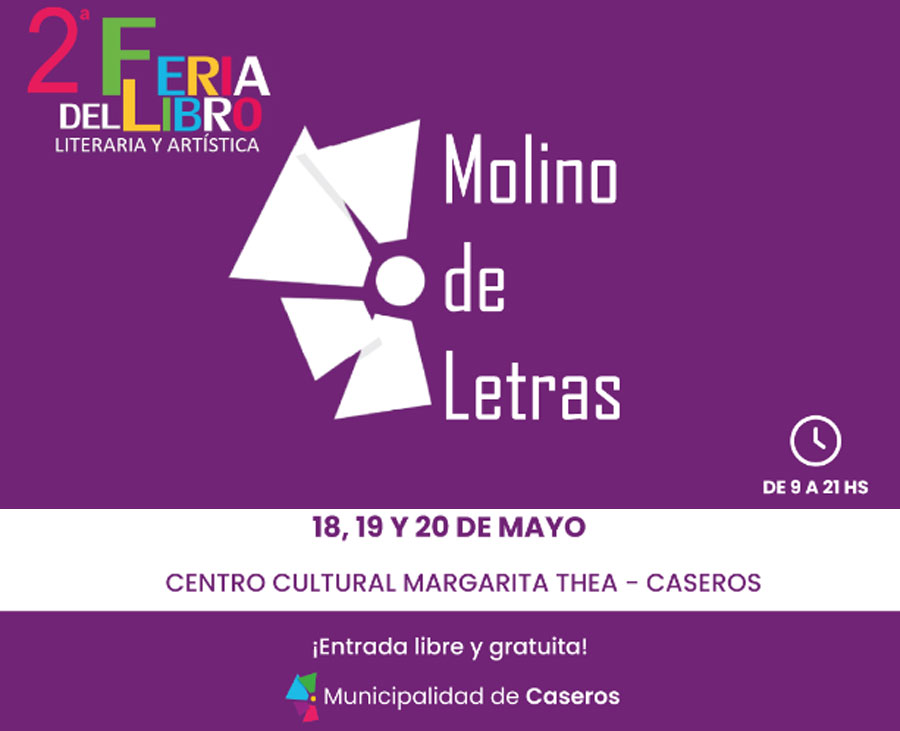 La semana próxima, los días jueves 18, viernes 19 y sábado 20 de mayo llega a Caseros la segunda edición de la feria del libro literaria y artística “Molino de Letras”. Durante estos 3 días, tendremos la posibilidad de escuchar e interactuar con distintos autores y artista de nivel local, regional y nacional. Además, habrá espacios para aprender, intercambiar ideas, establecer vínculos y disfrutar de nuestra cultura.