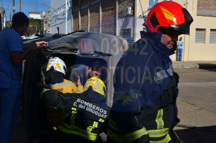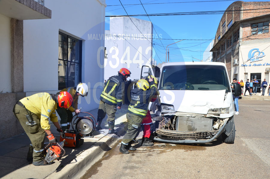 En esta oportunidad en el choque se vieron involucradas una Jeep que iba de oeste a este y una utilitaria Peugeot, que según testigos iba de sur a norte, la que impactó en el lateral del primero de los vehículos, provocando que se cruzara y tras impactar con el cordón, volcara sobre su lateral izquierdo contra la ochava noreste.