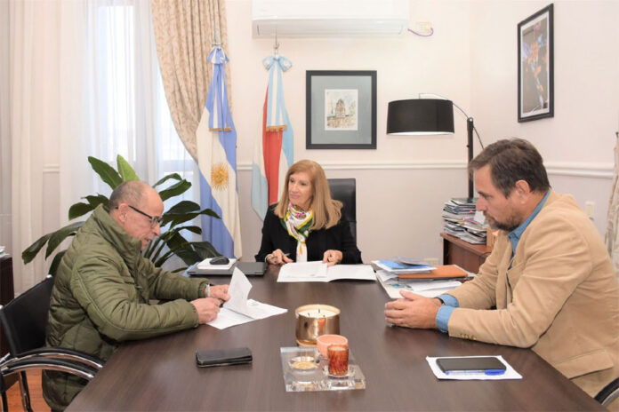 Esta semana, la titular de la cartera de Gobierno y Justicia recibió a los intendentes de Gilbert, Juan Alberto Meneses y de Valle María, Mario Sokolovsky, y al presidente Comunal de Aldea Spatzenkutter, Juan Lell, con quienes firmó convenios en el marco del Fondo Provincial de Seguridad para la ampliación de centros de monitoreo. Estuvo presente el secretario de Asuntos Municipales, Daniel Kramer.