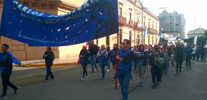 Desde la minoria de Agmer Uruguay por la Fuentealba se impulsó este jueves una movilización y concentración en Plaza Ramírez junto a sectores de desocupados, precarizados y compañeros en lucha, repudiando la represión del gobierno y en solidaridad al pueblo jujeño. Ademas exigiendo un paro nacional de todas las centrales sindicales para derrotar la reforma reaccionaria y lograr la satisfacción de todas las demandas.