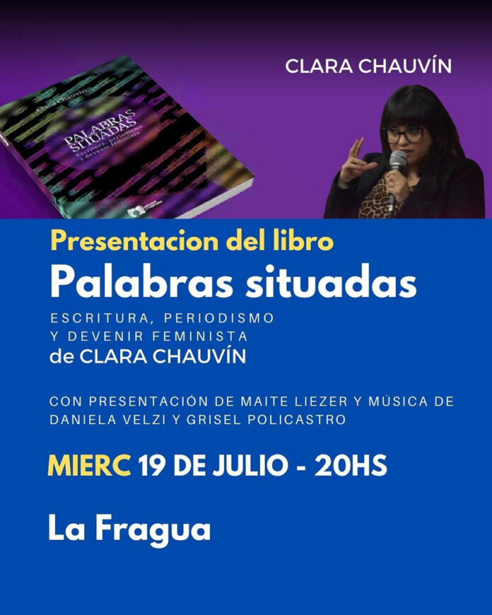 Este miércoles 19 de julio a las 20 hs en La Fragua la periodista uruguayense Clara Chauvin, presenta su segunda publicación “Palabras situadas” Escritura, periodismo y devenir feminista, un ensayo donde reflexiona sobre el importante rol que históricamente han tenido tanto la escritura como el periodismo para la lucha feminista y cuales son los desafíos a futuro en un contexto en que el movimiento de mujeres y disidencias no tiene la misma efervescencia que la vivida entre 2015 y 2018.