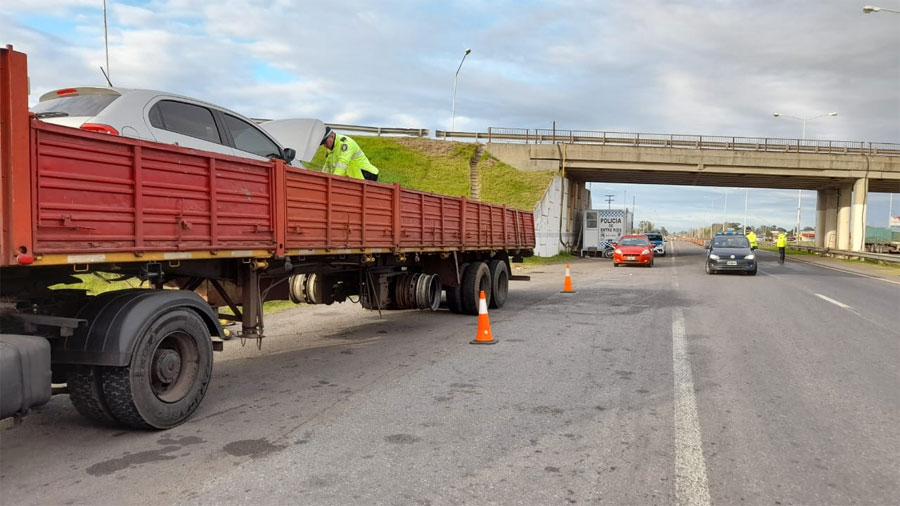 En horas de la mañana del pasado viernes, el personal policial del Puesto Caminero Gualeguaychú de la Dirección Prevencion y Seguridad Vial, que se encontraba sobre Autovía Gervasio Artigas N°14 frente a dependencia, logró detener la marcha de un camión marca Mercedes Benz, modelo 1634, conducido por un hombre con domicilio en provincia de Misiones, el cual venía traccionando un semirremolque marca Randon, que transportaba un automóvil marca Volkswagen Gol Trend.