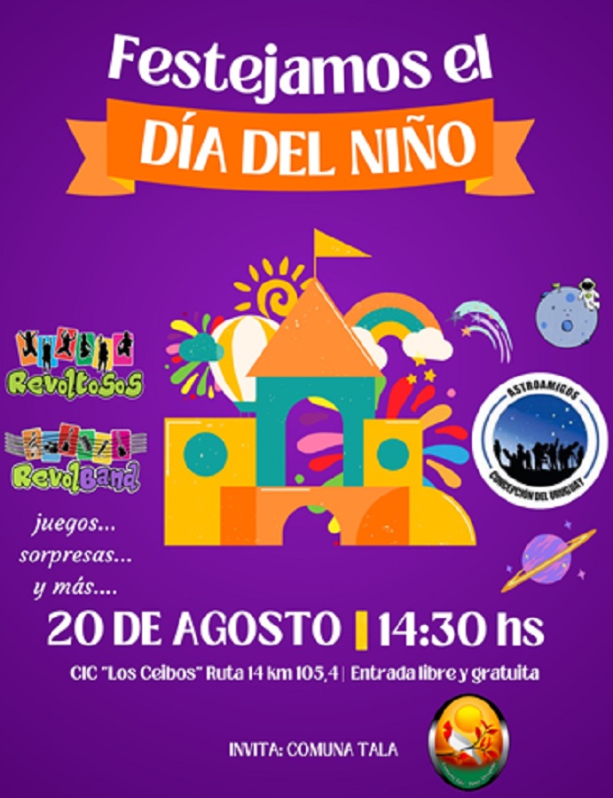 Así que el domingo 20 desde las 14:30 horas están invitados a participar de la celebración del “Día del Niño” en “Colonia los Ceibos” !!