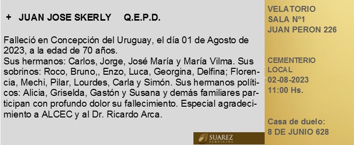 Fúnebres Juan José Skerly QEPD agosto 1, 2023 Más Fúnebres Fúnebres Aldo Rafael Benitez Q.E.P.D Fúnebres Maria Rosa Satto Vda de Dacuez Q.E.P.D Fúnebres Eduardo Horacio Carbone Q.E.P.D