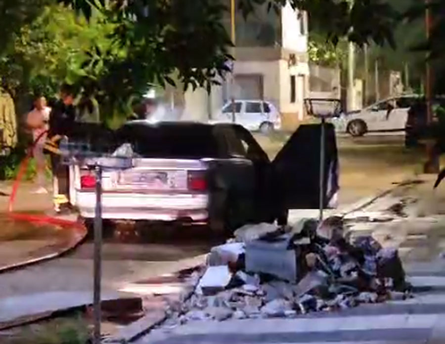 El hecho tuvo lugar en calle Calderón entre Juan Perón y Artigas, cuando el auto, Rover color gris, estaba circulando y de repente explotó algo en la zona del motor y comenzó a incendiarse.