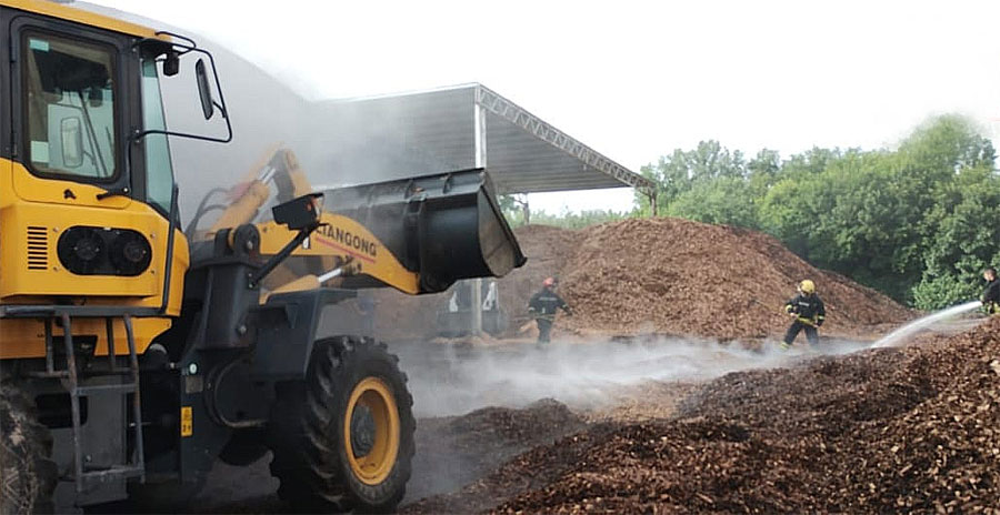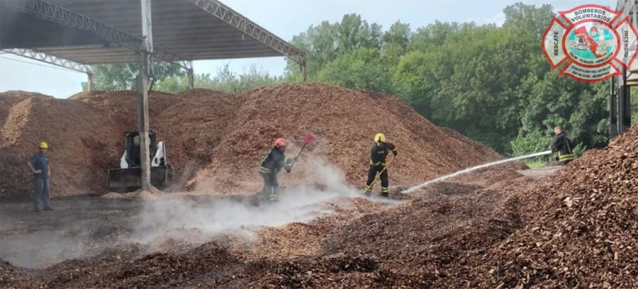 Efectivos del Cuerpo de Bomberos Voluntarios de Concepción del Uruguay, tomaron intervención este sábado alrededor de las 07:00 horas al ser alertados sobre un incendio de aserrín y chips de madera en el Parque Industrial de la ciudad.