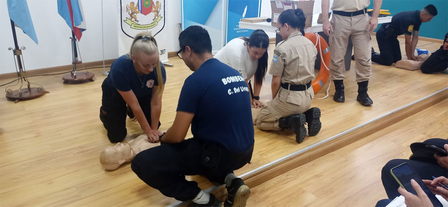 Se desarrolló el pasado lunes por la mañana una jornada de Capacitación de RCP y DEA, que estuvo a cargo del Centro Regional de Extensión Universitaria de la Prefectura de Zona Bajo Uruguay, en el marco de un programa de seguridad náutica.