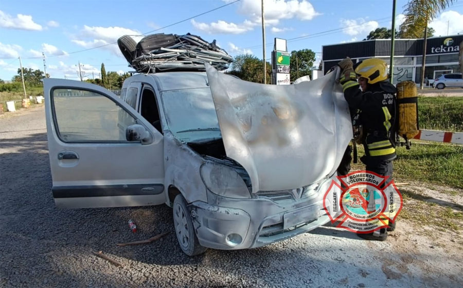 Se trataba de una camioneta Renault Kangoo que sufrió daños en el motor producto de las llamas..