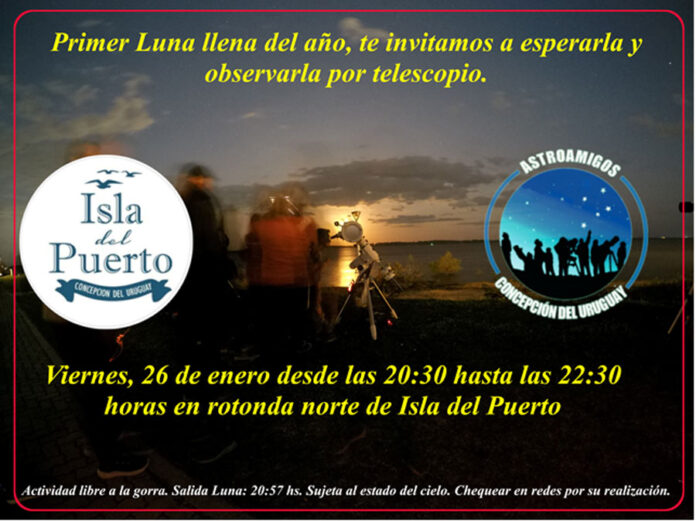 Éste viernes, 26 de enero desde las 20:30 horas los Astroamigos de Concepción del Uruguay invitan a esperar la salida de la Luna llena y luego observar su ascensión sobre el Río de los Pájaros.