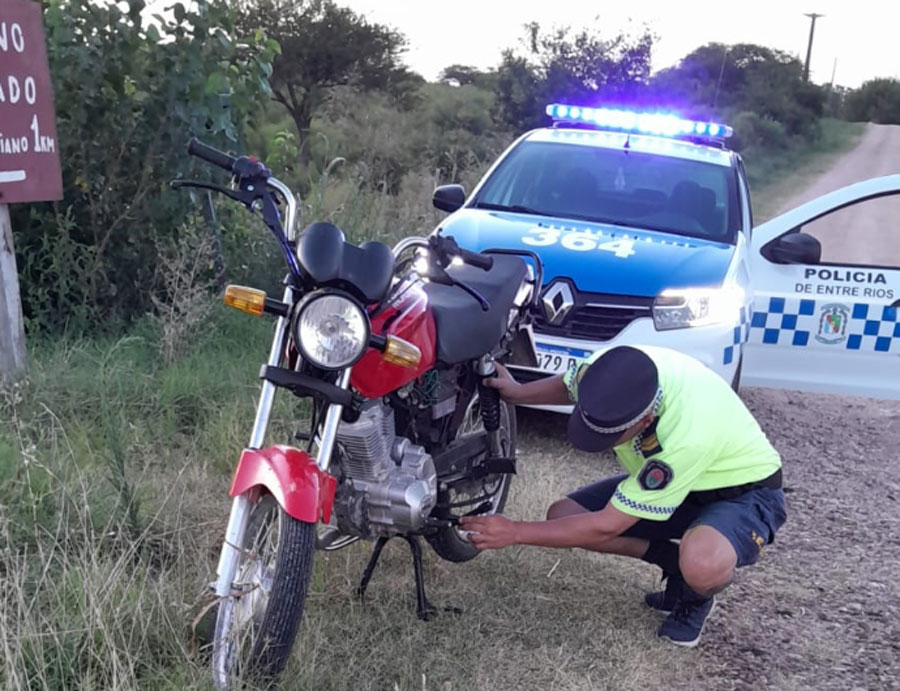 Personal del Puesto Caminero Uruguay – Bella Vista recibe la inquietud de vecinos sobre una persona circulando en una motocicleta en actitud sospechosa en zona de camino a San Cipriano y caminos vecinales. Se comisiona personal policial para el lugar y se logra dar con el vehículo, abandonado en inmediaciones del Km 140 de la Ruta Nacional N° 14.