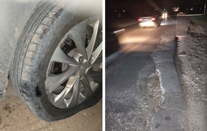 Esta persona transitaba en auto días pasados, con sus hijos de 7 y 3 años por el Acceso Artusi, a la altura de Combustible Gonzáles y la granja de Rosso, en momentos que pasó por el pozo que tendría un largo de un metro y unos 30 centímetros de largo, con una profundidad de casi 20 centímetros.