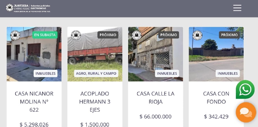 Durante 2023 se realizaron con éxito 159 subastas electrónicas en Entre Ríos y la recaudación por la venta de bienes fue de 1.911.688.695,63 pesos, cifra que no incluyó el pago de honorarios a los martilleros intervinientes ni las comisiones por servicio del portal de subastas electrónicas del Poder Judicial. A la fecha, más de 9.000 postores inscriptos están en condiciones de participar de la puja de bienes muebles e inmuebles y para este año se estima un volumen de trabajo similar al del año pasado.