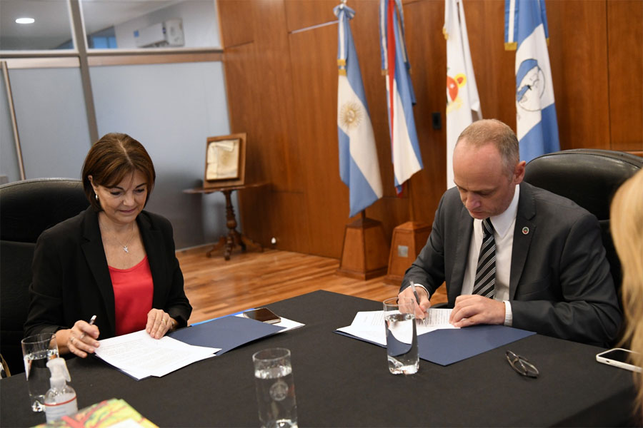 El presidente del Superior Tribunal de Justicia de Entre Ríos (STJER), vocal Leonardo Portela, y la decana de la Facultad de Trabajo Social de la Universidad Nacional de Entre Ríos (UNER), Sandra Marcela Arito, suscribieron hoy un convenio de colaboración. El documento tiene como objetivo fortalecer el acervo bibliográfico del Plan de Estudios de la carrera de Abogacía que está en proceso de aprobación de la Comisión Nacional de Evaluación y Acreditación Universitaria (CONEAU) y que se dictará en esa casa universitaria.