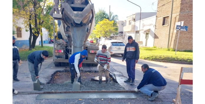 Estos trabajos son realizados con fondos íntegramente municipales, y se pide colaboración para que los vecinos de nuestra ciudad cuiden el hormigón fresco en los distintos bacheos.
