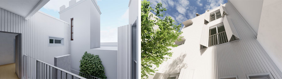 El edificio se construirá con 2 bloques, dejando un patio central para generar buenas ventilaciones y dar valor a la vista de la torre desde el lugar.  Una fachada vegetal aportará exquisita belleza al espacio público urbano y contribuirá a las propuestas de eficiencia energética del proyecto, absorbiendo las altas temperaturas del oeste y reparando la ausencia de arbolado en zona. Además, contará con dos patios internos de paisajes vegetales y terreno absorbente, equilibrando las temperaturas y mitigando los efectos de las lluvias.