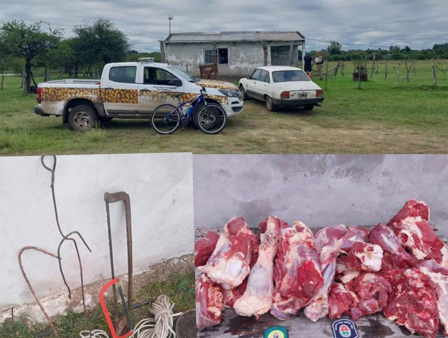 El personal brigadista comenzo la investigación que con datos e indicios que fueron aportados a la Fiscalía interviniente a cargo del Dr. Ricardo temporetti, y tras el pedido de allanamiento y requisa domiciliaria, desde el Juzgado de Garantía local, a cargo del Dr. Gabriel Emir, primero se libro una Orden judicial para una finca ubicada en calle circunvalación de la ciudad de Feliciano, donde los uniformados se hicieron presentes y notificaron de la medida judicial a una persona mayor de edad; lugar donde procedieron al formal secuestro de elementos de interés para la causa, tales como sierras carniceras con resto de carne, una piola con restos de sangre y lo más destacado varios cortes cárnicos de animal bovino por aproximadamente ochenta (80) kg con restos de pasto y tierra, provenientes de faena a campo, coincidentes con el tipo de cortes cárnico del animal que había sido faenado.