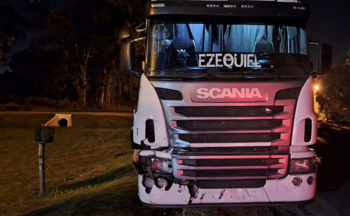 En las primeras horas de esta madrugada, el personal de la comisaría de San José intervino por un siniestro vial reportado en la ruta 130, involucró a un camión Scania G840, cuyo conductor, un joven de 25 años proveniente de Villa Elisa, colisionó frontalmente con un equino suelto en la vía pública.