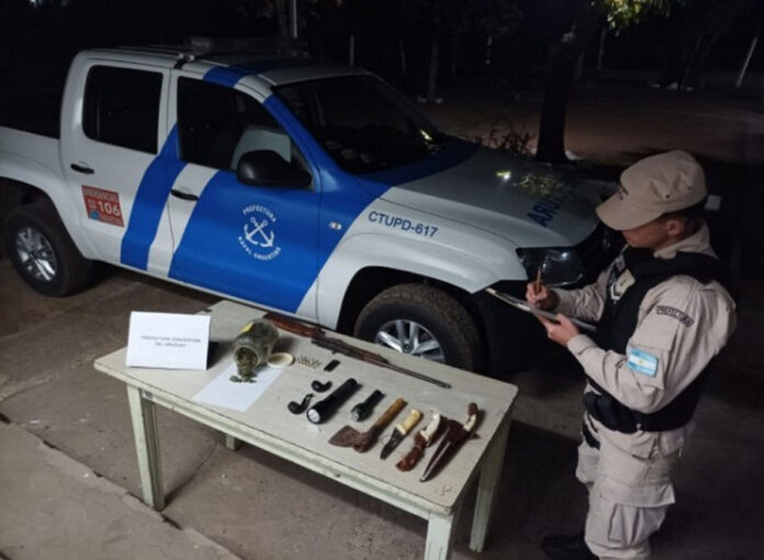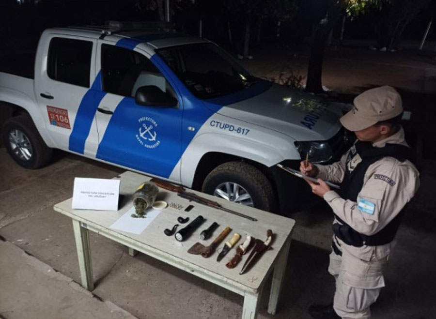 El personal decomisó la droga y secuestró una embarcación, una carabina calibre 22, tres cuchillos y un hacha.