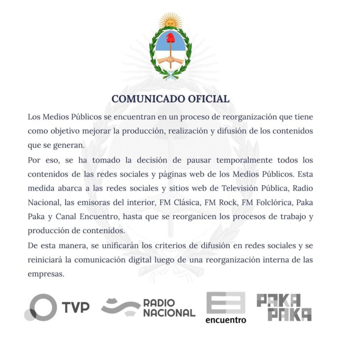 Este lunes el gobierno resolvió cerrar redes sociales y páginas web de los medios para una supuesta «reestructuración».