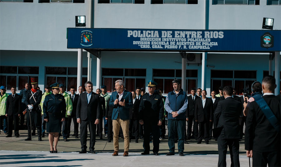 «Necesitamos que nuestra Policía, que la Policía de Entre Ríos, que tanto orgullo nos genera, esté en la calle cuidando a los vecinos; que recuperemos un patrimonio de los entrerrianos, que es la paz. Saber que podemos dormir tranquilos y que nuestras cuestiones más preciadas como la vida de nuestros seres queridos, también nuestros patrimonios están bien cuidados por esta fuerza», dijo el gobernador para finalizar su discurso.