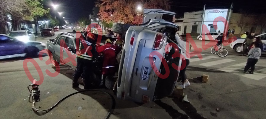 Un violento entre una camioneta y un vehículo familiar, se produjo este viernes, pasadas las 21:00 horas, en la esquina de bulevar Yrigoyen y calle Leguizamón.