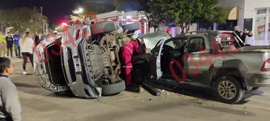 El siniestro vial de impresionante características, fue protagonizado por una Fiat Strada, que transitaba (según testigos, lo que se afirmaría por lo sucedido) que circulaba de oeste a este y al trasponer Leguizamón, impactó contra el lateral izquierdo de una Chevrolet Trailblazer, la que a raíz de tremendo impacto, terminó volcando.