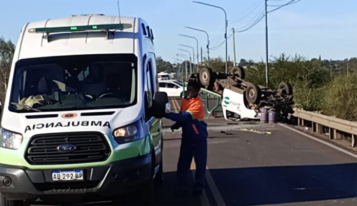 SINIESTRO VIAL: En horas de la tarde, siendo aproximadamente las 16:00 Hs. Personal Policial de Comisaría Villa Adela toma intervención por siniestro vial en cabecera Sur del acceso al puente Alvear (Av. Pte. Perón), donde por causas que se tratan de establecer una camioneta Toyota modelo Hilux, perteneciente a la empresa Extragas, la cual  circulaba en sentido oeste – este por la Av. de mención, pierde el control del vehículo, volcando; en la acción además  resultó  involucrada una motocicleta marca Gilera Smash color negro y rojo, la cual circulaba en sentido contrario al rodado anterior.