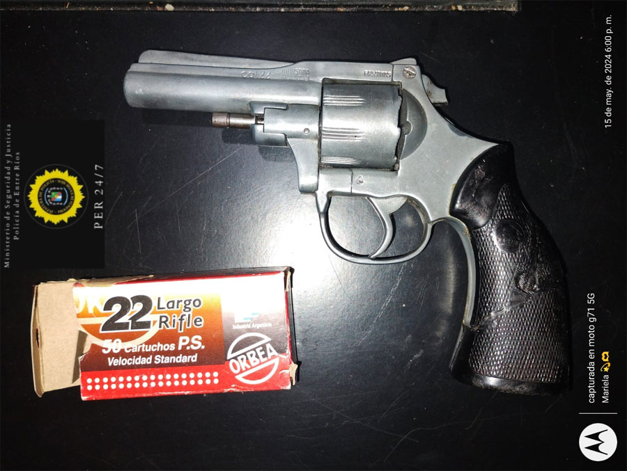 Allí tras notificar a su propietario se realizó el secuestro de un arma de fuego tipo revólver cal.22 y cartuchería siendo elementos de interés para la causa. Siendo todo lo acontecido informado a la fiscalía.