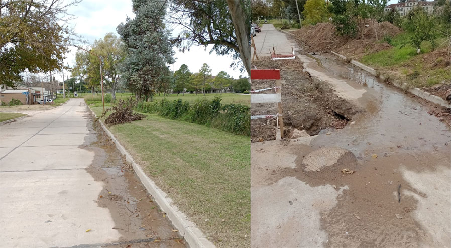Pasaron los días y ya va casi in mes y medio de esas tareas y el gran pozo sigue estando, pero lo más grave es que las pérdidas de agua potable retornaron y se ve correr el líquido elemento por la calzada.