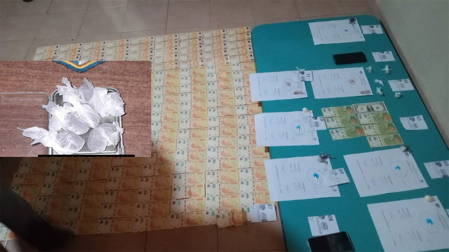 En la m isma se obtuvieron resultados positivos, hallándose sustancias estupefacientes Clorhidrato de Cocaína y Marihuana; dinero en efectivo en moneda nacional e internacional; telefonía móvil y; y un motovehículo de 250cc., en el cual se trasladaban los mismos.